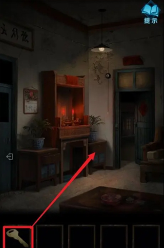 返回客厅,用【钥匙】打开神龛右侧柜子,取得【老虎钳】。