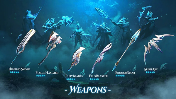 根据战斗需求,在斩猎刀、强击锤、血怒刃、塑能枪与饲灵枪间灵活切换。