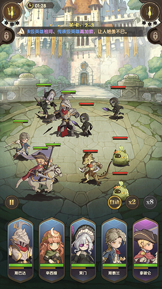 自动战斗:开启全自动战斗模式后,只需合理配置阵容,角色便会智能作战,极大节省操作时间,适合碎片化娱乐。