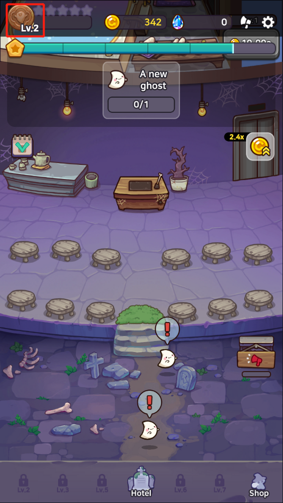 积累足够资源后即可升级酒店,解锁通往下一阶段的内容。