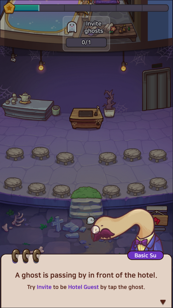 点击游荡的幽灵尝试邀请其成为酒店住客。