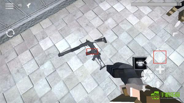 1、在游戏中找到任意枪械道具,将准心对准枪支,此时屏幕左侧会出现“手指”拾取按钮,按住即可成功拾取武器。